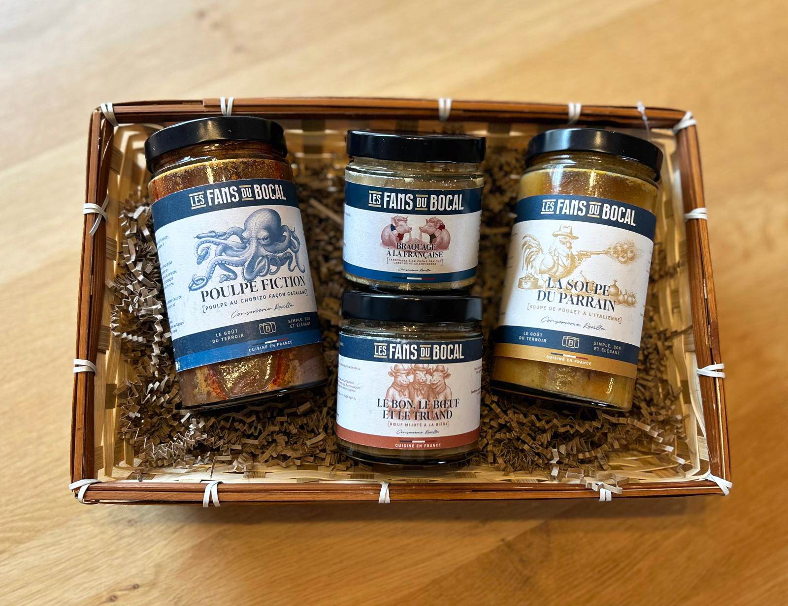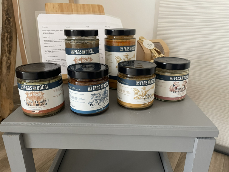 Après un peu plus d'un an de formation complémentaire en lien avec les métiers de la conservation, et l'acquisition d'un laboratoire en juin dernier, ils ont élaboré leurs 4 premières recettes de plats préparés aux noms délicieusement créatifs : "Le Bon, le Bœuf et le Truand", "Poulpe Fiction", "Braquage à la Française", "La Soupe du Parrain".